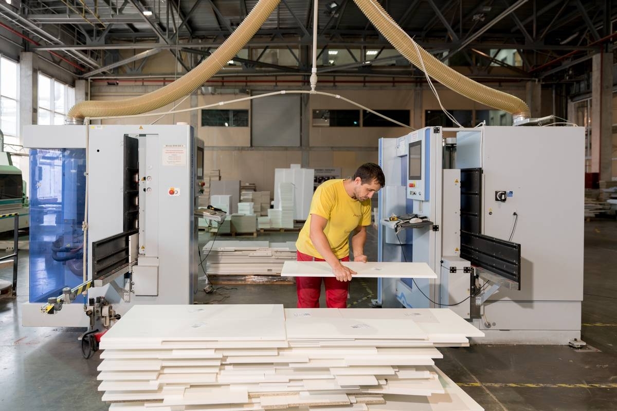 «Скульпторы» каждый месяц изготавливают более 1 500 столешниц из искусственного камня. Более 80% работ выполняется вручную.