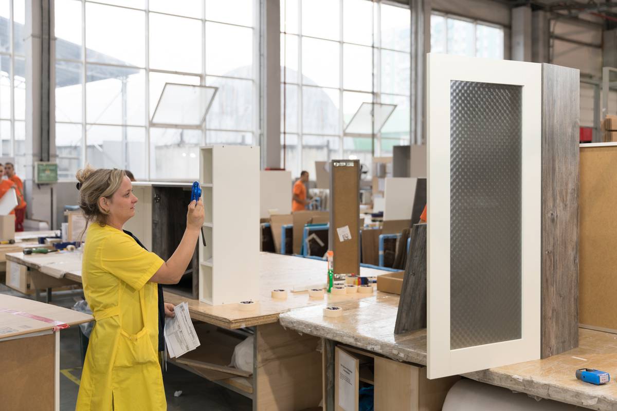Будущее уже давно наступило — на фабрике роботы и люди, объединив усилия, вместе создают красоту. Фасады из массива, а также все деревянные элементы и столовые группы привозят из Италии, а на фабрике в Саратове их шлифуют, грунтуют и декорируют краской, лаком, патиной. Те же этапы производства проходят и фасады из МДФ. Чтобы получить стабильный тон на всех частях одной кухни, краску наносит робот — его «мастерством» восхищаются даже итальянские партнеры «Марии», бывающие здесь на экскурсиях. Далее полотна вручную расписываются художниками. Их фабрика растит самостоятельно. Мастера учатся по полгода, прежде чем им доверяют расписать целую кухню.